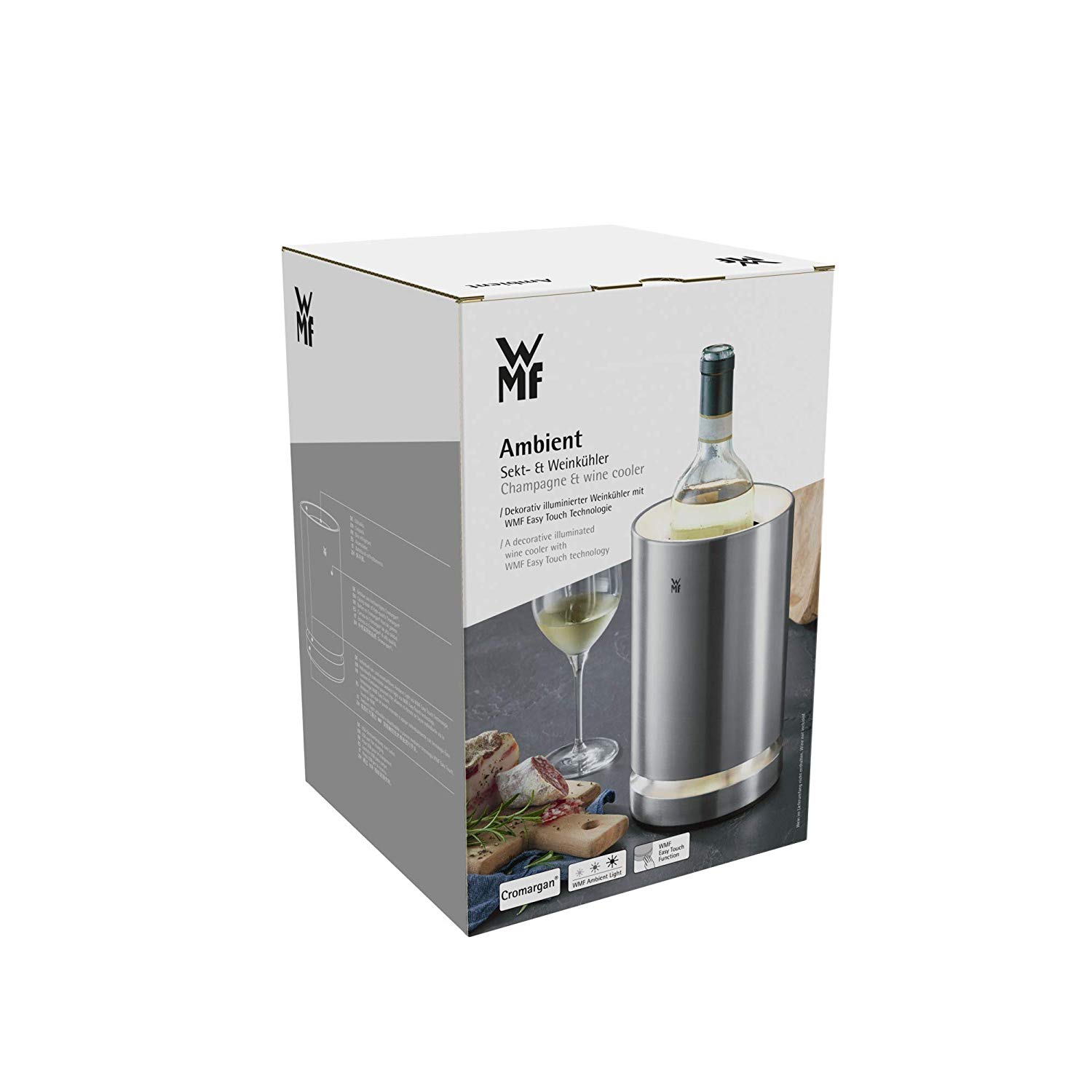 Bình giữ lạnh rượu vang WMF Em này mà để ướp lạnh rượu vang, sâm panh cho các bữa ăn gia đình thì thực sự quá tuyệt vời Sản xuất bởi Công nghệ Cromargan 18/10 độc quyền với 18% chrome, 10% niken và 72% là thép giúp nồi ổn định, bền, an toàn tuyệt đối khi tiếp xúc đồ ăn ở nhiệt độ cao và không bị oxi hóa khi tiếp xúc hóa chất. Đảm bảo an toàn tuyệt đối với sức khỏe người tiêu dùng theo tiêu chuẩn Châu Âu. Đèn LED trang trí ở trên cùng và dưới cùng của bộ tản nhiệt (ba mức độ sáng). Pin hoạt động khoảng 4-5 giờ với mức độ sáng 3 Bộ làm mát linh hoạt và có thể lưu trữ phẳng trong tủ đông Bình có thể sử dụng như thùng chứa đá Kích thước: 14,3 x 14,3 x 23,7 cm; có vòng bít làm mát, cáp sạc 1x có đầu nối USB -----------------------------------------