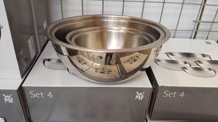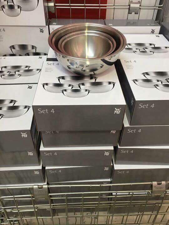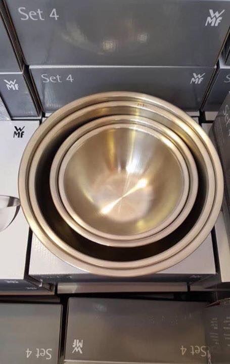 Tuyển đại lý bán buôn, CTV trên toàn quốc -------------------------------------- ️ Bộ âu WMF Gourmet gồm 4 chiếc âu với các đường kính và dung tích: 1 âu Ø 16cm (0,75l); 1 âu Ø 18cm (1l); 1 âu Ø 22cm (2l); 1 âu Ø 24cm (2,75l). ️ Được thiết kế theo công nghệ độc quyền Cromagan đảm bảo an toàn tuyệt đối khi tiếp xúc đồ ăn ở nhiệt độ cao và không bị oxi hóa khi tiếp xúc hóa chất ️ C️ó thể sử dụng trong lò nướng, nồi hấp. Đặc biệt có thể sử dụng đun trên bếp kể cả bếp từ. ️ Cực kì dễ dàng vệ sinh và sạch sẽ hơn rất nhiều so với âu nhựa. An toàn với máy rửa bát. ------------------------------------------