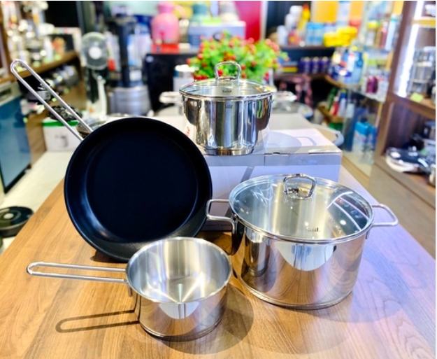 + 1 nồi cao có nắp 16 cm 1,9 lít + 1 nồi cao có nắp đậy 20 cm 3,8 lít + 1 nồi cao có nắp 24 cm 5,7 lít + 1 nồi có nắp đậy 20 cm 2,5 lít + 1 nồi có nắp 16 cm 1,4 lít + 1 quánh 16 cm 1,4 lít + 1 chảo chống dính 28 cm + 1 chảo chống dính 24 cm + 1 nồi hấp 20 cm + 1 thìa