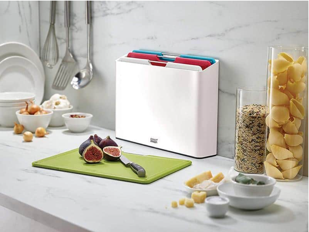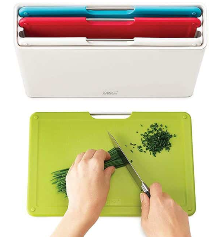 Bộ Thớt Joseph Joseph Folio 60196 4 Món được xếp theo tầng trong một chiếc hộp có bề mặt nhẵn bóng rất đẹp mắt, sang trọng và đẳng cấp. Giữa các thớt có khoảng cách đủ để không khí lưu thông khiến cho thớt luôn được giữ sạch sẽ, khô thoáng, không bị ẩm mốc. Với chiếc hộp đựng tiện lợi này, bộ thớt sẽ luôn được cất giữ ngăn nắp và đảm bảo vệ sinh.