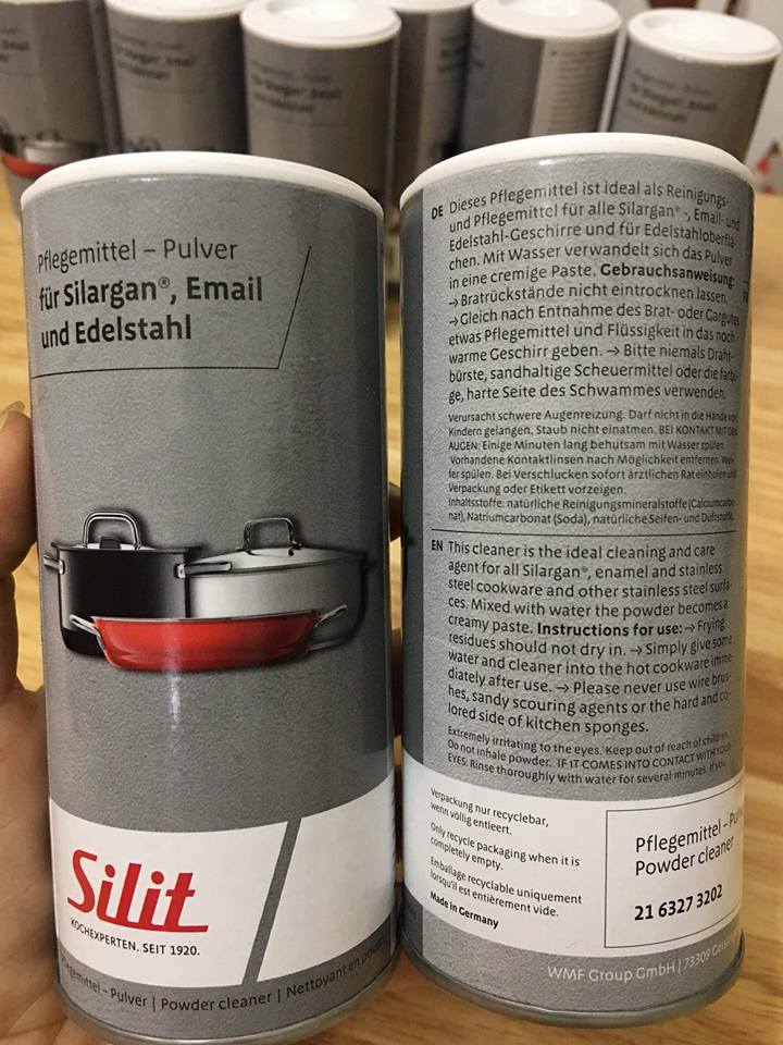 BỘT LÀM SẠCH VÀ BÓNG XOONG NỒI SILIT Hàng có sẵn – Giá: 390k/ hộp 200g Tuyển đại lý bán buôn, CTV trên toàn quốc -------------------------------------- Nhanh chóng, đơn giản, và cực tiết kiệm thời gian!!!! ️ THÀNH PHẦN: Khoáng chất làm sạch tự nhiên: Canxi cacbonat, soda xà phòng tự nhiên... ️ CÔNG DỤNG: - Làm sạch bóng vết dầu mỡ cháy đen, két bẩn trên xoong , nồi, chảo, bồn chậu rửa... một cách nhanh chóng, không mất thời gian & sức lực. - Sản phẩm tự nhiên nên không gây hại da tay, không gây kích ứng da, an toàn cho sức khỏe người sử dụng & môi trường. - Dùng an toàn lau cọ cả trong lòng nồi chảo... ️ HƯỚNG DẪN SỬ DỤNG Trộn 1 ít bột + nước thành hỗn hợp kem sền sệt sau đó dùng khăn trắng ẩm nhúng kem này rồi lau lên những vùng xoong nồi bị bẩn. ️ LƯU Ý - Không dùng bối sắt để cọ. - Để đạt hiệu quả tốt nhất nếu xoong nồi bị bám bẩn nhiều dầu mỡ nên dội qua bằng nước nóng sau đó mới lau bằng bột SILIT --------------------------------------