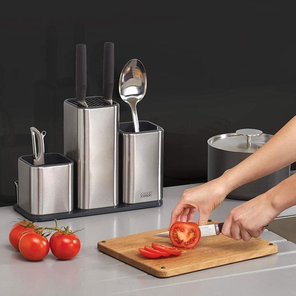 Thương hiệu Joseph Joseph hiện vẫn đang tiếp tục phát triển với những sản phẩm sáng tạo và đa năng dùng trong bếp, mang đến những sản phẩm hỗ trợ nấu bếp vô cùng tiện ích. Có thể nhắc đến một điển hình SET ĐỰNG DỤNG CỤ NHÀ BẾP KÈM THỚT này.