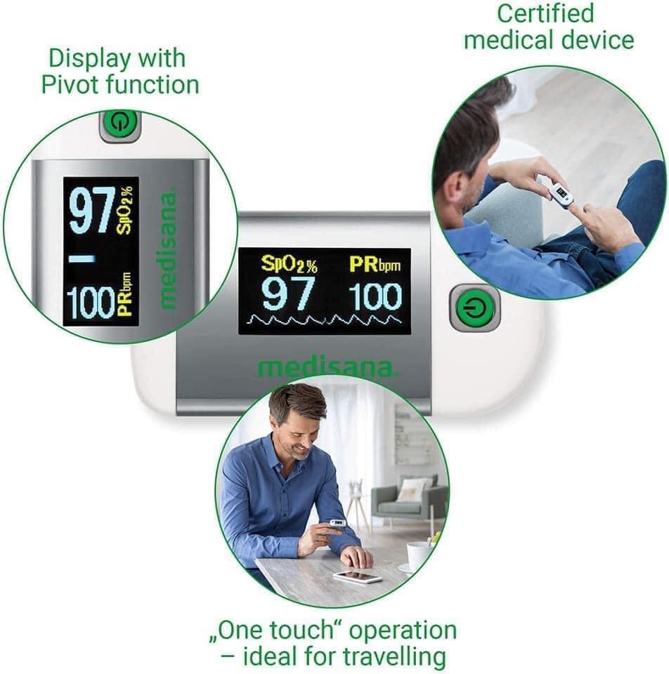 Máy đo oxy xung Medisana PM 100 79455 - Hãy bảo vệ sức khỏe cho bạn hay cho chính gia đình bạn ngay hôm nay! Là thiết bị đo độ bão hòa oxy động mạch đầu ngón tay (SpO2) và nhịp tim (mạch) với độ chính xác cao. Các giá trị đo hiển thị với 6 định dạng khác nhau ở dạng sóng hoặc thanh trên màn hình OLED