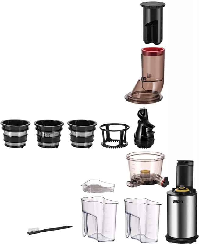 Không chứa BPA Bộ phụ kiện của Máy Ép Trái Cây 3 Trong 1 Unold 78265 3 in 1 bao gồm: