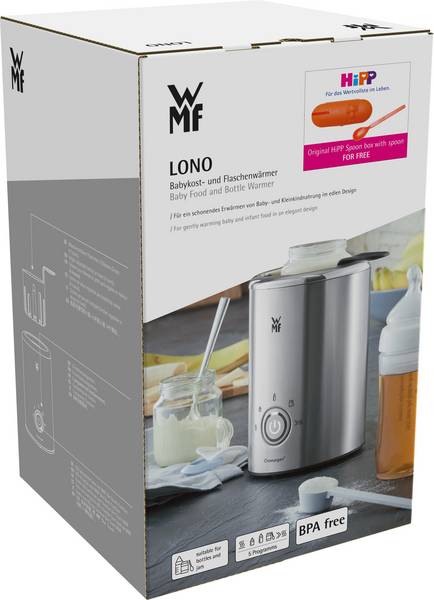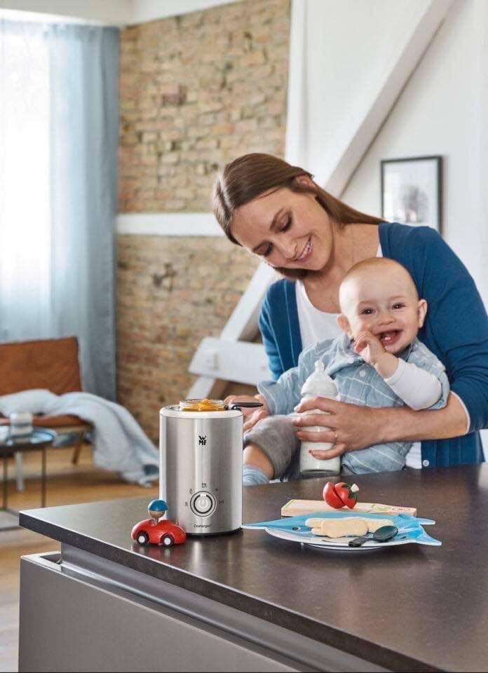 MÁY HÂM SỮA VÀ THỨC ĂN WMF Máy hâm sữa và thức ăn WMF ̛́̃ ̀ ̛́ ̆ HÀNG CÓ SẴN – Giá: 1.650k Tuyển đại lý bán buôn, CTV trên toàn quốc ------------------------------------------- ️ Phím có đèn LED và chức năng một chạm ️ Máy có 5 chức năng rất tiện cho mẹ chăm em: 1. Làm ấm đồ ăn của các bé, giã đông sữa mẹ để trong tủ lạnh 2. Làm nóng bình sữa size bé đến nhiệt độ thân nhiệt của mẹ (37 độ C) 3. Làm nóng bình sữa size lớn đến nhiệt độ thân nhiệt của mẹ (37 độ C) 4. Làm nóng thức ăn của các bé đến nhiệt độ thân nhiệt của mẹ 5. Làm nóng nhanh thức ăn và sữa của các bé ️ Thiết kế nhỏ gọn, trang nhã, sản xuất theo công nghệ độc quyền Cromagan đảm bảo an toàn tuyệt đối khi tiếp xúc đồ ăn ở nhiệt độ cao. ️ Chế tác tỉ mỉ trên chất liệu inox 304 hay còn được biết đến là thép không gỉ 18/10, là chất liệu cao cấp không bị bào mòn, không bị oxi hóa khi tiếp xúc hóa chất, đặc biệt an toàn tuyệt đối với sức khỏe người tiêu dùng theo tiêu chuẩn Châu Âu. ️ Chai / ly sử dụng có thể điều chỉnh chiều cao bốn giai đoạn - để dễ dàng tháo lắp ️ Chức năng tự động tắt và giữ ấm (40 phút) ️ Bình nhựa không chứa BPA thân thiện cực kỳ. ️ Thiết kế nhỏ gọn, tinh tế cực sang mà lại bền. ️ Thông số kỹ thuật: Kích thước (DxWxH): 11,5 x 9 x 13,7 cm; Khối lượng: 998g; Công suất: 140W; Điện áp: 220-240V ~ 50-60Hz -----------------------------------------