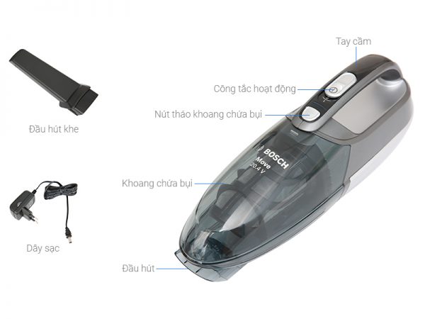 MÁY HÚT BỤI CẦM TAY BOSCH BHN20110 Máy hút bụi cầm tay Bosch BHN20110 ́ ́ ̣ ̂̀ HÀNG CÓ SẴN – GIÁ: 4.950k Tuyển đại lý bán buôn, CTV trên toàn quốc ----------------------------------------- Máy hút bụi mini dùng pin Bosch BHN20110 có thể đ̂̀ ̛̀ ́ ̣ ̀ ̉, tiện dụng vô cùng Khoang chứa chất lỏng: 40ml Khoang chứa bụi: 300ml Hộp đựng bụi/ chất lỏng dễ dàng tháo lắp Kích thước nhỏ gọn ~1,4kg có thể xách tay để vệ sinh ở nhiều vị trí khác nhau như sử dụng để hút bụi ở trên bàn ăn, ở những nơi cao, hút bụi ô tô, ghế sofa, mảnh vụn thức ăn rơi vãi trong mọi ngóc ngách,... Khe hút bụi dễ dàng tiếp cận đến mọi ngóc ngách. Với lực hút mạnh mẽ sẽ giúp quá trình làm việc của máy được diễn ra nhanh hơn, hiệu quả khi từ xa có thể hút được nhanh chóng những hạt bụi thô đến li ti. Công nghệ hút sạch Air Clean với hiệu suất làm sạch cao và bộ lọc khuẩn HEPA, không những mang đến một không gian sạch sẽ mà còn sạch khuẩn rất tốt. Máy sử dụng pin Ni-MH thân thiện với môi trường. Pin NiMH 20.4V cực khỏe, lực hút lớn, thời gian sạc pin đầy trong 12 - 16 tiếng và hoạt động lên đến 16 phút cho mỗi lần sạc đầy. Khi pin yếu máy sẽ tự động báo để người dùng sạc. Kích thước: 138x110x368mm Hiệu điện thế (V): 20.4V ------------------------------------------