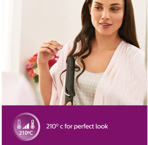 Nhiệt độ cao tối đa 210°C giúp máy sẵn sàng làm việc trong thời gian 60s, cho kết quả hoàn hảo và phong cách chuyên nghiệp.