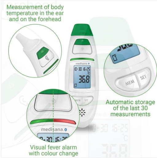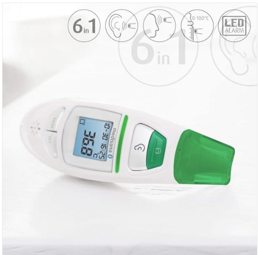 Nhiệt kế hồng ngoại tích hợp Bluetooth TMedisana 76145 TM 750 Connect cho phép đo chính xác nhiệt độ cơ thể ở tai và trán chỉ trong vài giây. Sản phẩm có thêm chức năng đo nhiệt độ môi trường, chất lỏng và nhiệt độ bề mặt. Ngoài ra, với cổng VitaDock mới, giờ đây bạn có thể lưu trữ tất cả dữ liệu của mình trực tuyến và đồng bộ hóa giữa nhiều thiết bị iOS và Android để truy cập mọi lúc, mọi nơi.