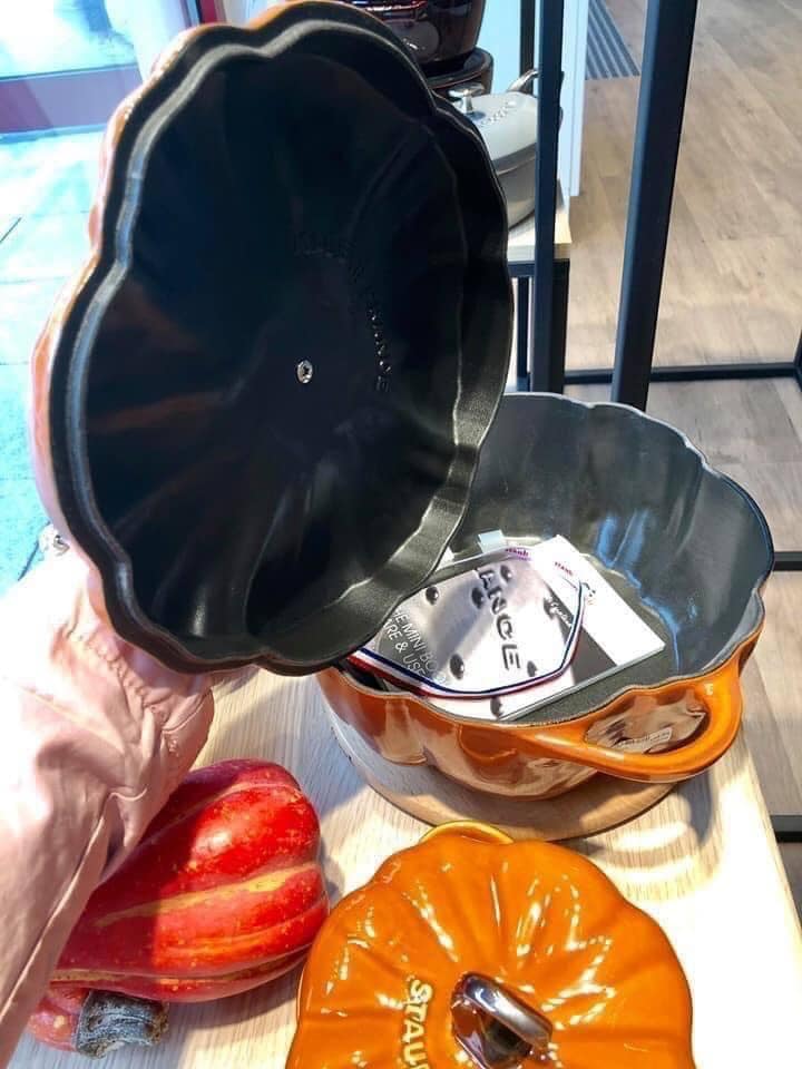 Nồi gang Staub bí ngô 24cm, cao 19 cm, dung tích 3,45 lít, Made in France dùng cho các món nấu chậm đảm bảo tuyệt ngon, để trên bàn tiệc như một món đồ trang trí không thể thiếu.