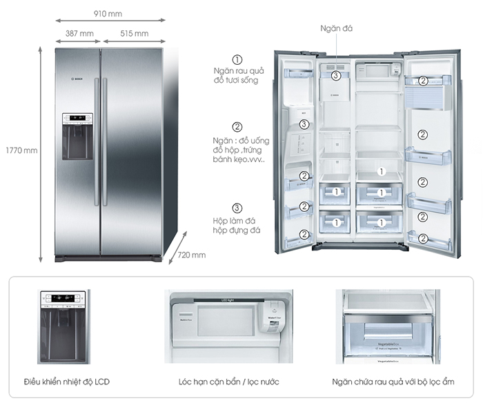️ Bên trái tủ bên ngoài thiết kế hệ thống cung cấp đá ra bên ngoài thông minh từ hệ thống ngăn đá.